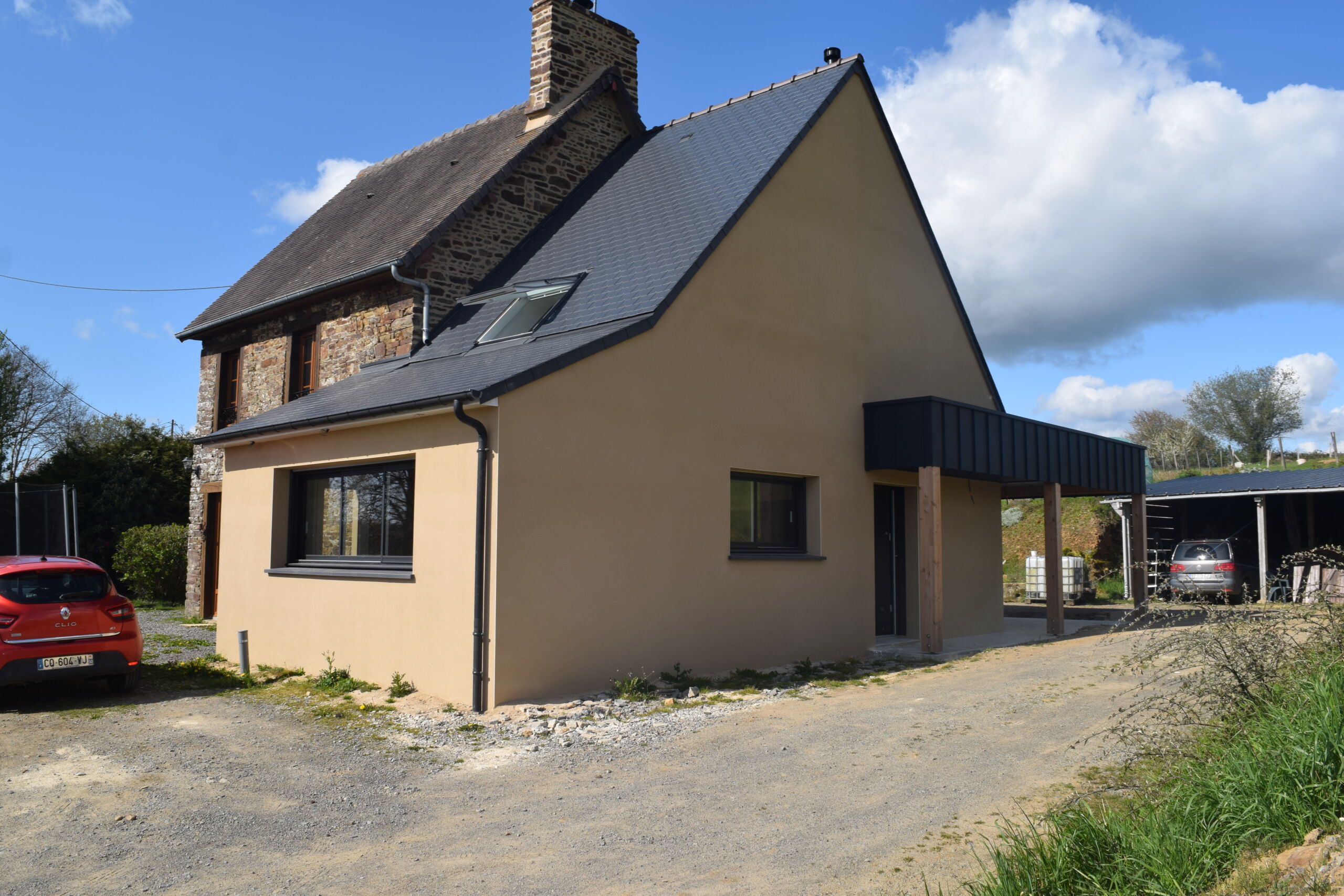L’aménagement de cette maison a été complètement repensé en déplaçant la cuisine dans l’extension créée. L’ancienne cuisine est devenue une chambre, l’ancien garage a été transformé en salle de bain et en bureau. L’extension accueille ainsi la cuisine, un cellier et l’entrée de l’habitation. Dans la continuité, un abri ouvert a été implanté remplaçant ainsi le garage.